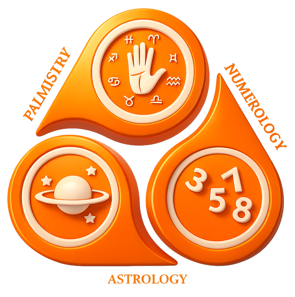 Step into a personalized, all-in-one life blueprint with Astrology, Numerology, and Palmistry combined for maximum clarity and impact.